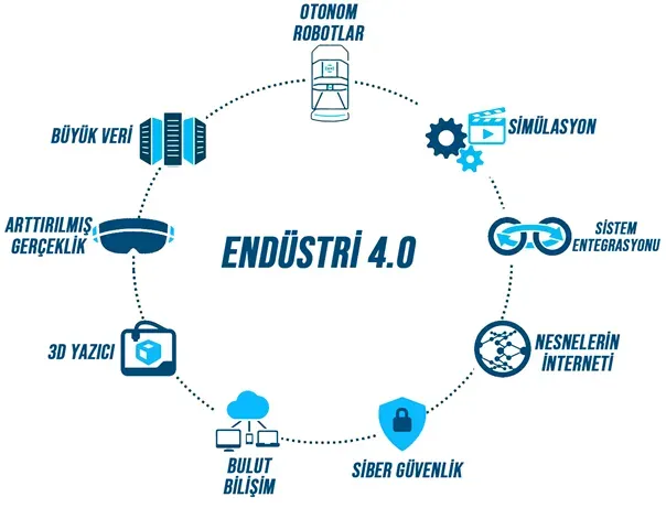 | Gelecek Trendler ve Zorluklar | Yapay zeka, dijital ikizler, otonom robotlar gibi trendler büyürken siber güvenlik, veri mahremiyeti ve yatırım maliyetleri zorluklar olarak ortaya çıkar. |